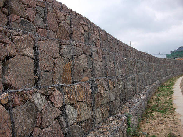 石籠網(wǎng)由高不腐蝕、高強(qiáng)度、具有延展性的低碳鋼絲或者包覆PVC的以上鋼絲使用機(jī)械編織而成,使用該網(wǎng)制作而成的箱型結(jié)構(gòu)就是石籠。根據(jù)ASTM和EN標(biāo)準(zhǔn),所使用的低碳鋼絲直徑根據(jù)工程設(shè)計(jì)要求而不同。一般介于2.0-4.0mm之間,石籠網(wǎng)鋼絲的抗拉強(qiáng)度不少于38kg/m2,金屬鍍層重量一般高于245g/m2,石籠網(wǎng)片的邊緣線直徑一般要大于網(wǎng)線直徑。其雙線絞合部分的長(zhǎng)度不得小于50mm.以保證絞合部分鋼絲的金屬鍍層和PVC鍍層不受破壞。